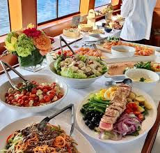 Our boat serves a buffet of Vietnamese / Japanese / Korean / Chinese / International dishes and fruit drinks, soft drinks, bottled water, beer, wine, chillout music and karaoke